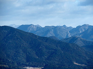 | 吉祥山山頂から観る南アルプスの荒川岳、赤石岳、聖岳 | 林道沿いの分岐 | ||||