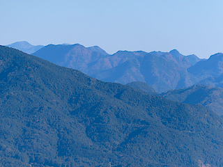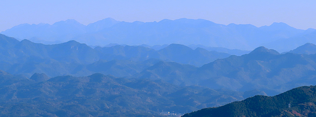| 吉祥山山頂から観る富士山と城山 | 吉祥山山頂から観る南アルプスと三ツ瀬明神山 | ||||