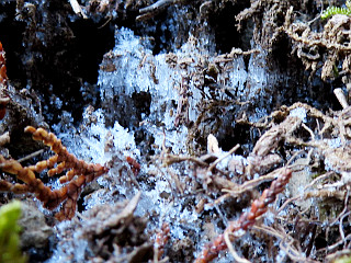 | 山頂では日向でも雪が残っていた | 霜柱 | スギの花粉はしっかり準備ができていた | |||
