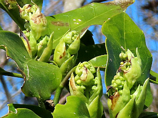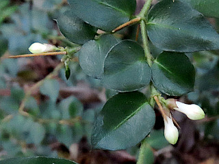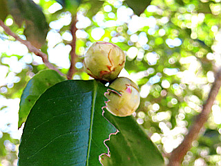 | ぽつぽつ咲き始めたアセビ | ヤブツバキの蕾はまだ堅い | モズ | |||